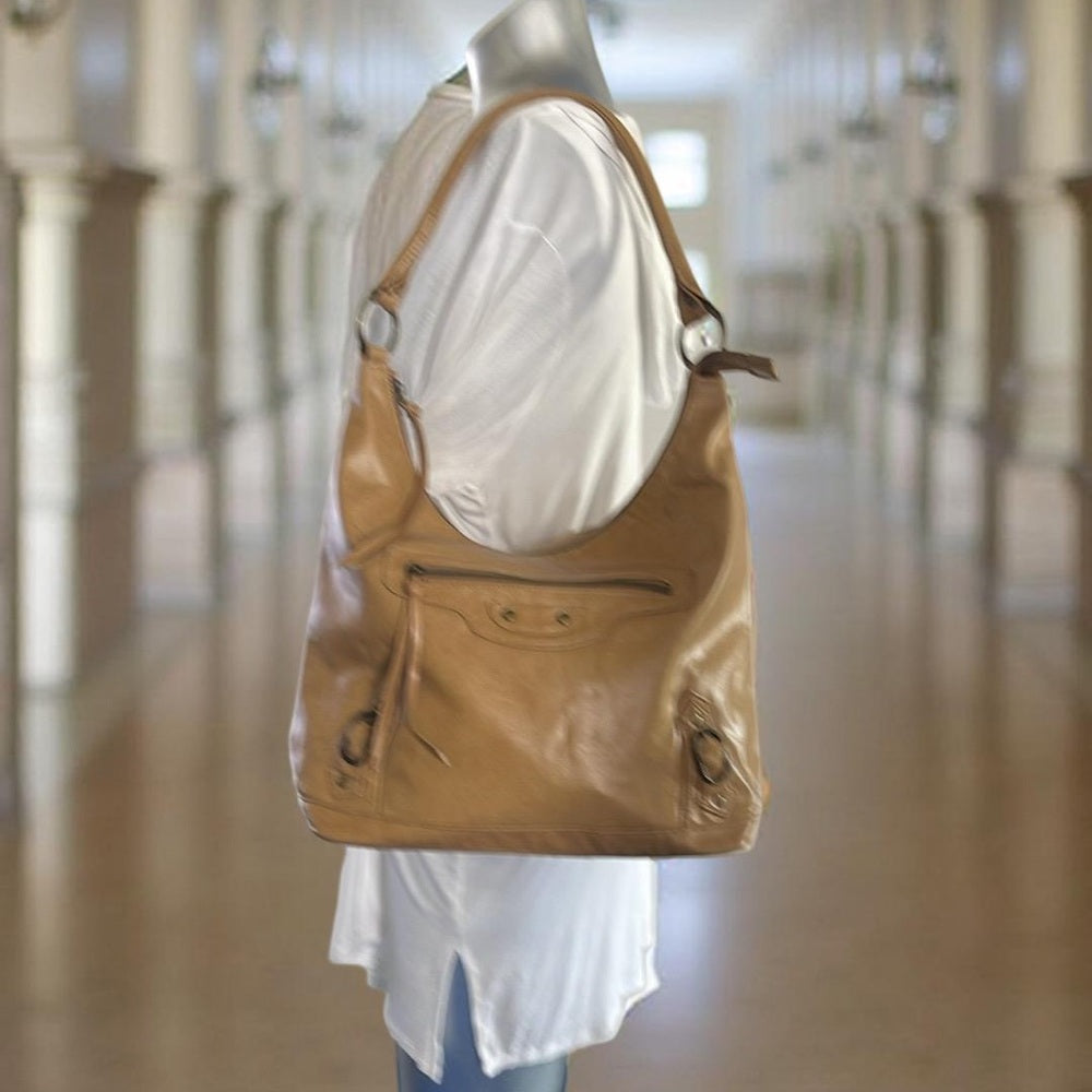 Unbrande Elegant Faded Tan Sheep Leather Large Tote Bag