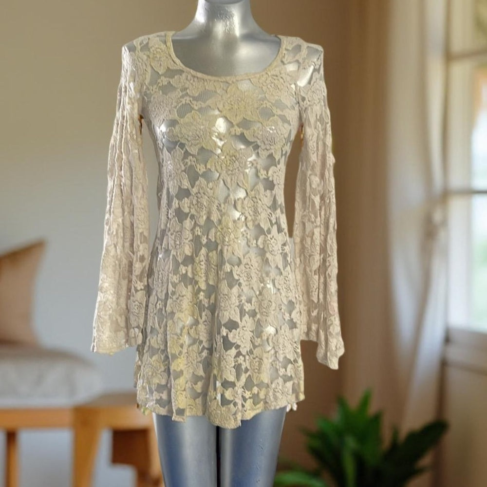Audrey 3+1 Elegant Cream Lace Women's Top size 2
