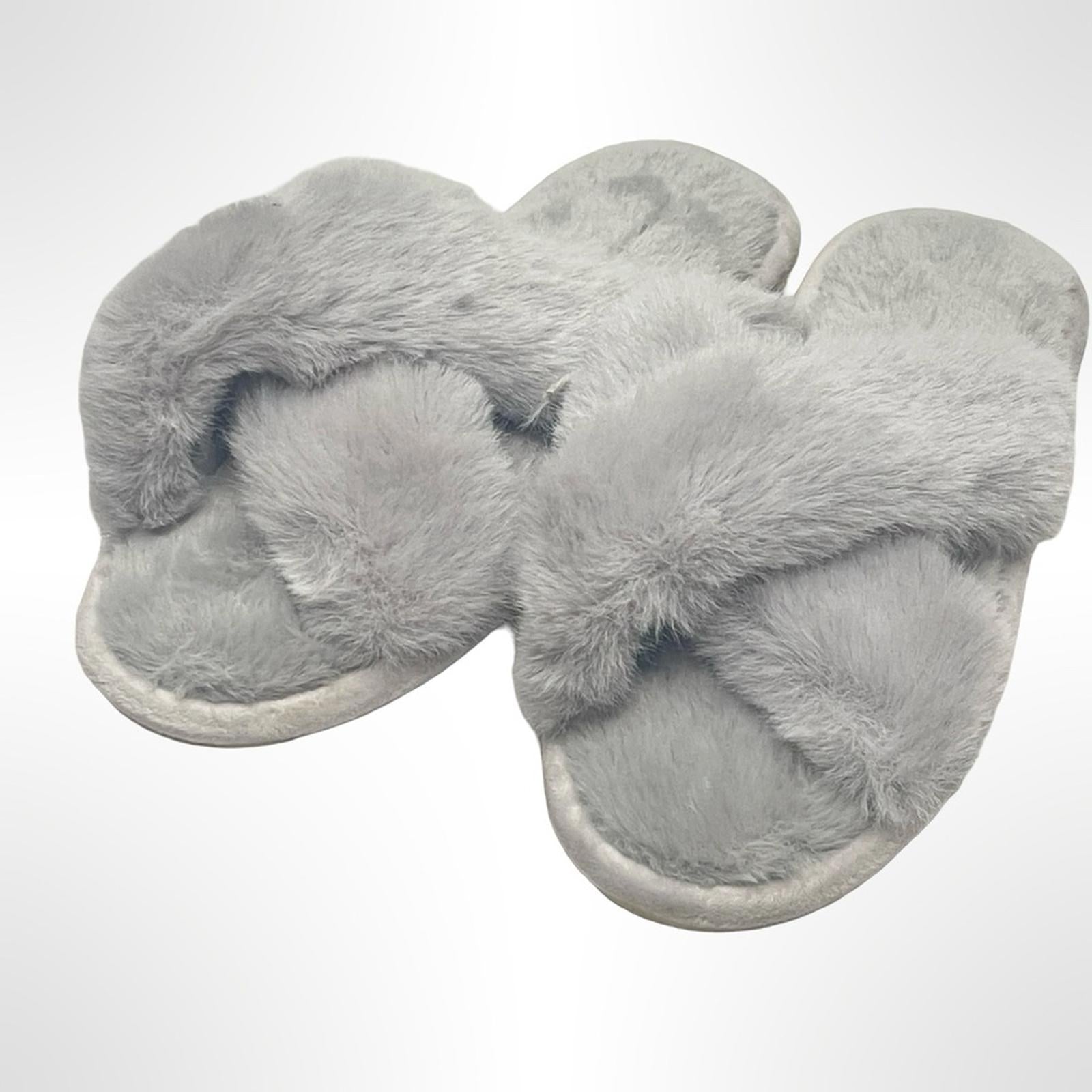 Cozy Gray Faux Fur Women's Slippers size L