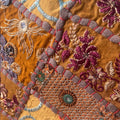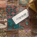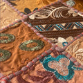 Beautiful Brown handmade quilt square pillow cover with intricate gold embroidery. Features floral and geometric patterns.