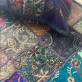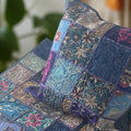 Enhance your home decor with this vibrant patchwork embroidered pillow case. Featuring a stunning mix of blue, purple, and gold, this set adds a touch of elegance to any room.
