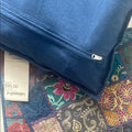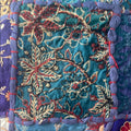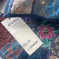 Beautiful Blue handmade quilt square pillow cover with intricate gold embroidery. Features floral and geometric patterns.