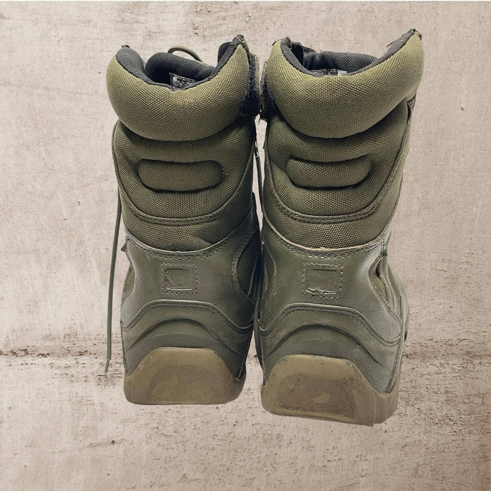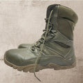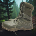Durable and rugged men's tactical boots in olive green. Perfect for outdoor adventures and tough terrains.