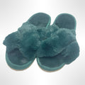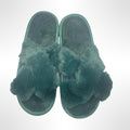 Step into comfort with these plush green slippers. Perfect for lounging at home.