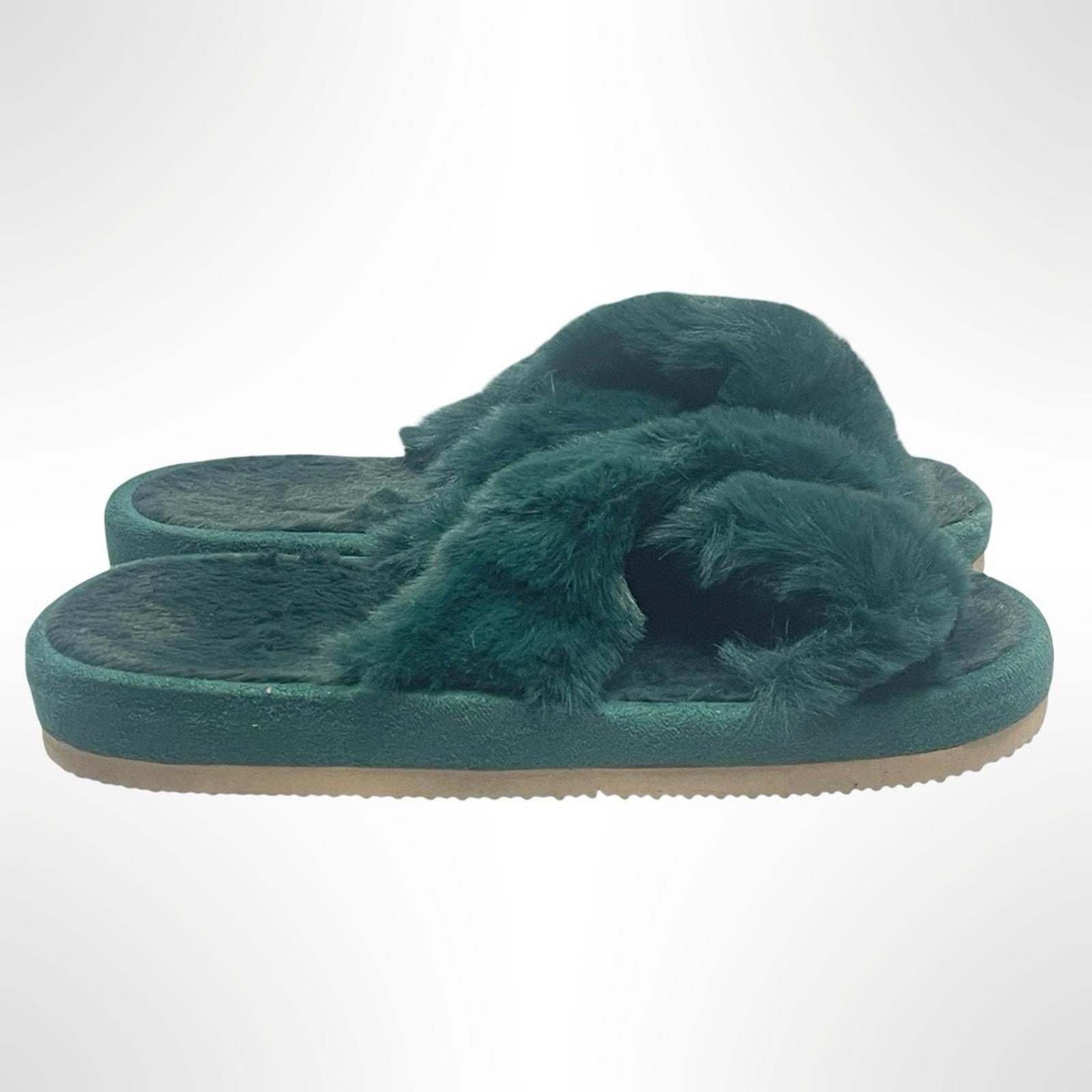 XL size 11 Women's Plush Green Slippers